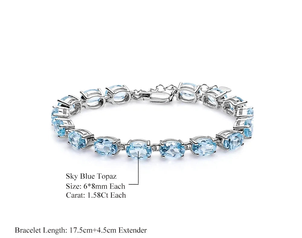 Classic Natural Sky Blue Topaz Bracelet in Sterling Silver. Elegant and Refined.