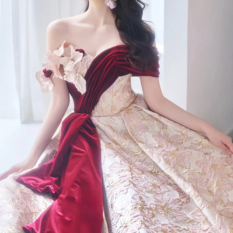 French Style Evening Dress Slash Neck Lace Up Up to 4XL