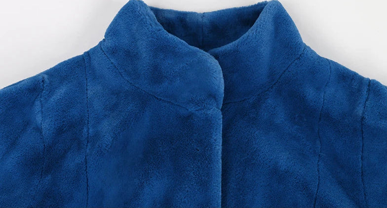Long Warm Blue Winter Coat. Thick and Fluffy with Sizes Up To 7XL